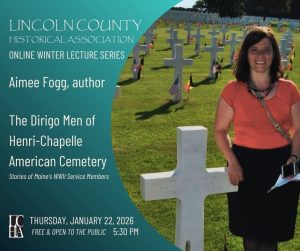LCHA is proud to launch our 2026 Winter Lecture Series on January 22 with author Aimee Fogg, who will share stories of Maine’s WWII Service Members as she discusses The Dirigo Men of Henri-Chapelle American Cemetery. Thanks to sponsor J. Edward Knight Insurance, this online lecture is free and open to the public, pre-registration is required to receive the link to participate!