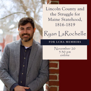 The Lincoln County Historical Association welcomes Ryan LaRochelle, Senior Lecturer at the University of Maine’s William S. Cohen Institute for Leadership and Public Service and former LCHA Board President, for this special Members Forum.