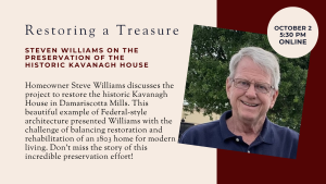 Homeowner Steve Williams discusses the project to restore the historic Kavanagh House in Damariscotta Mills. This beautiful example of Federal-style architecture presented Williams with the challenge of balancing restoration and rehabilitation of an 1803 home for modern living. Don’t miss the story of this incredible preservation effort!