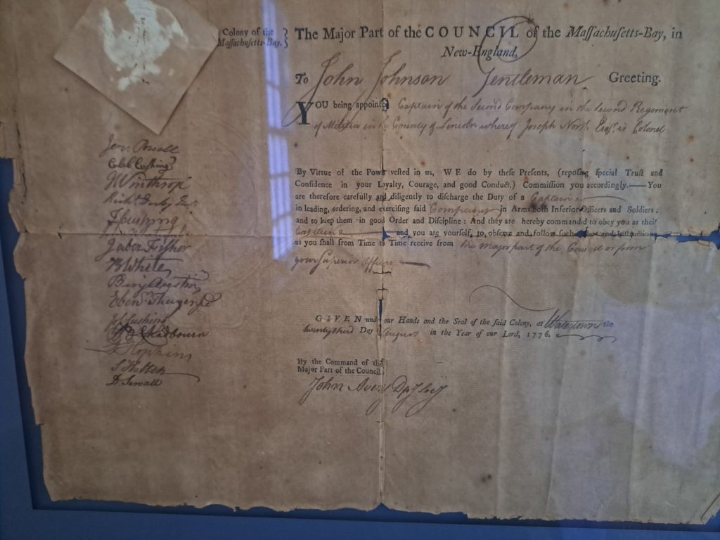 9. John Johnson was born in July 1741. John Johnson was born in July 1741 in Cambridge, Massachusetts. His military experience included the following service: Captain, 2nd Company, 2nd Regiment, Lincoln County Militia, 23 August 1776, Private & Corporal, 11th Massachusetts. Capt. White’s Co., Col Francis’ Regt. Capt. Clark’s Co. Col Benjamin Tupper’s Regt. He was in battles at Saratoga, Bemis Heights, and Monmouth. Johnson married Rebecca Goodwin and nine children. By 1806, he was postmaster at the courthouse with Rebecca helping. Their eldest son Thomas succeeded him as Postmaster, with youngest Daughter Rebecca Johnson Prescott assisting her brother. (It’s not fair but it seems that only men were postmasters in those days!) He was 72 when he died in Dresden on June 11th 1813. (Commission in the Lincoln County militia is located in parlor of courthouse)